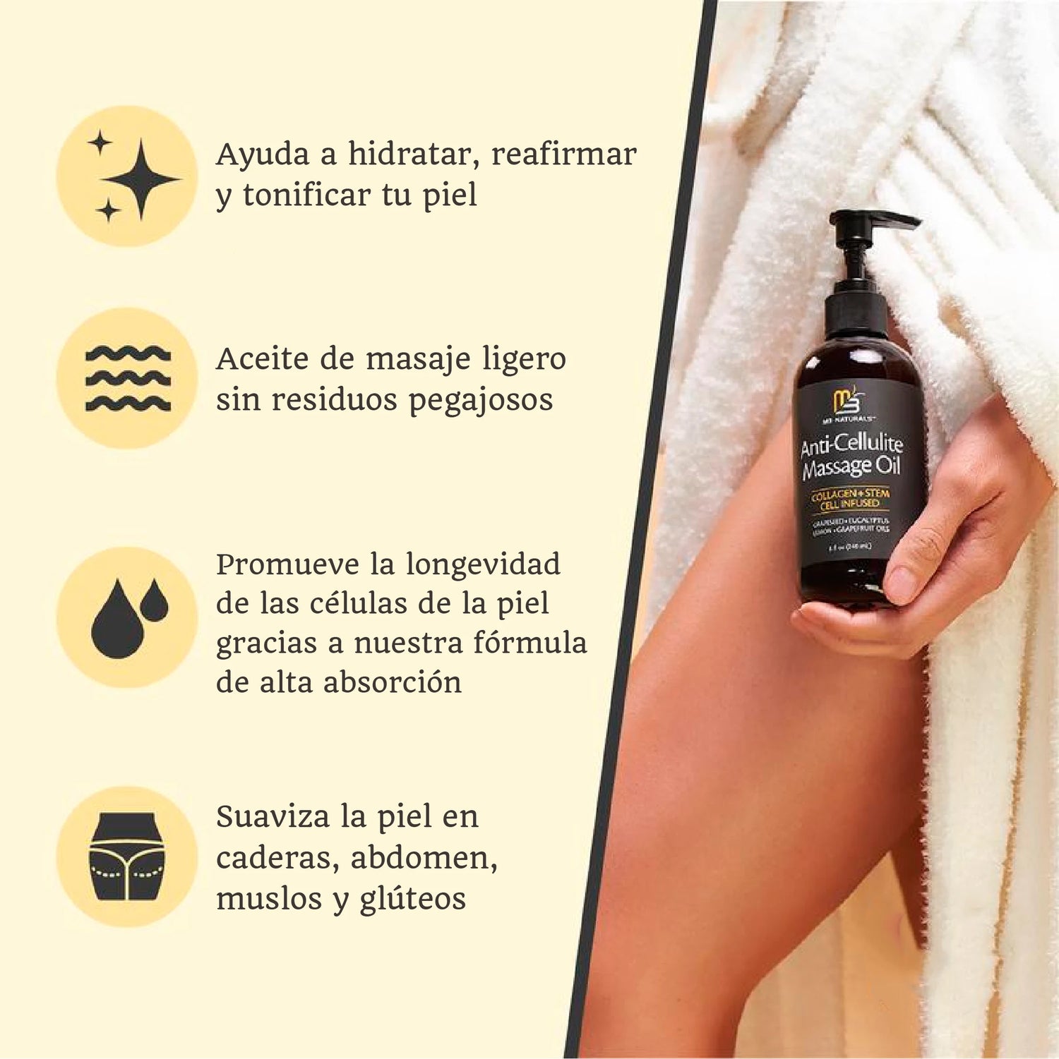 Nutre intensamente la piel, evitando resequedad y aportando un brillo saludable que resalta tu belleza natural.